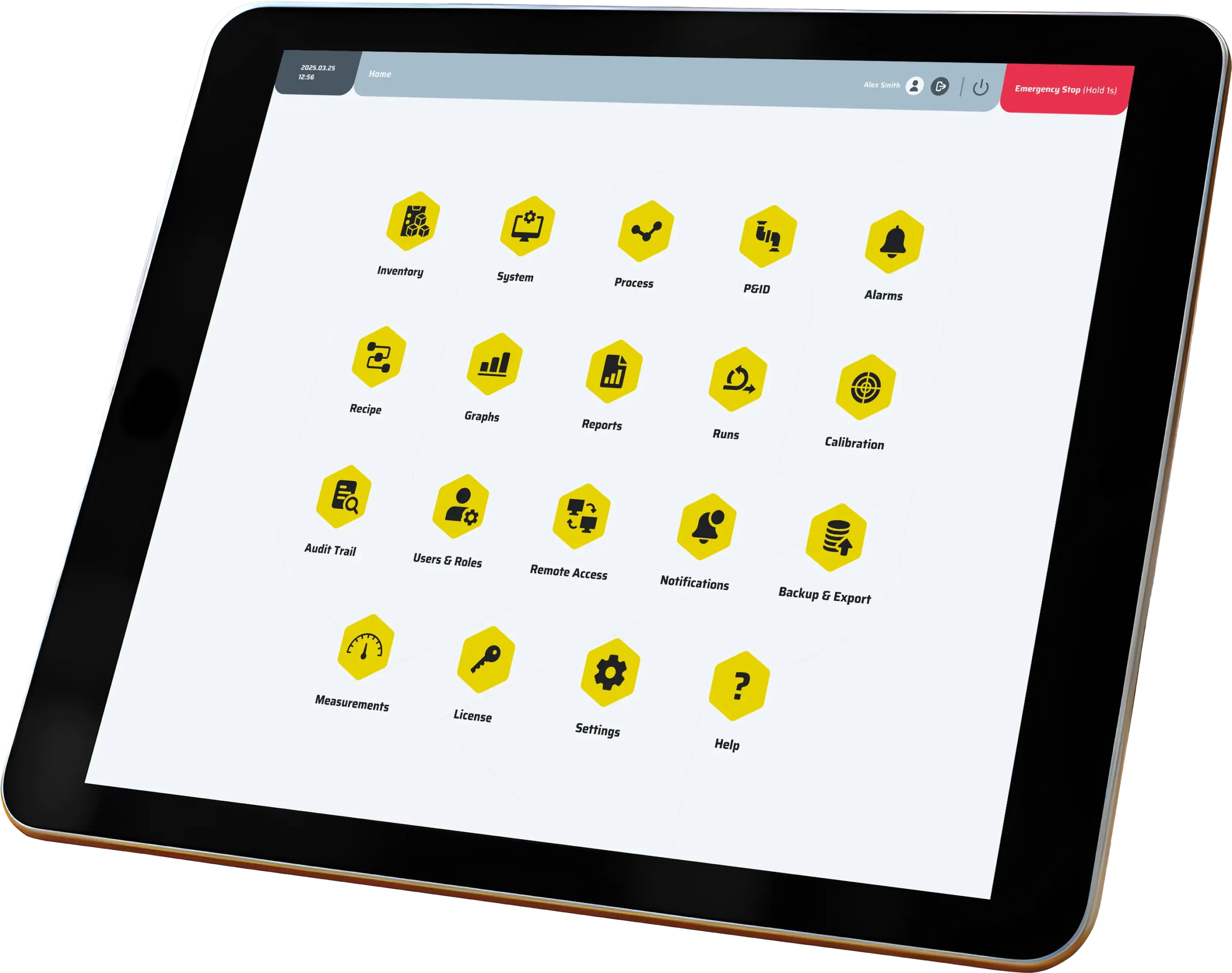 Precision control is achieved through the integration of P&ID loops, event-based logic, cascades, and hardware interlocks, all governed by comprehensive alarm policies to ensure safe and accurate operation.